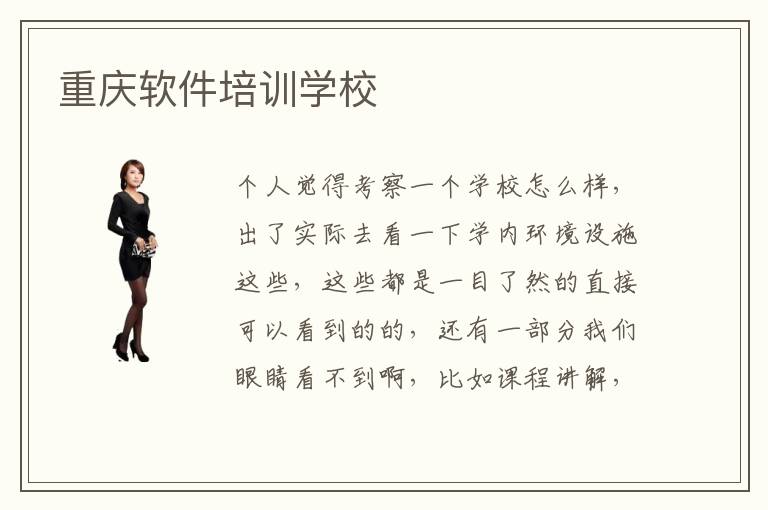 个人觉得考察一个学校怎么样,出了实际去看一下学内环境设施这些,这些都是一目了然的直接可以看到的的,还有一部分我们眼睛看不到啊,比如课程讲解,老师经验这些,所以还有就是试听一下他们课程,完全可以切身体会教书授课水平怎么样,如果重庆软件学校免费试听可以去听课,你完全可以去申请一下免费试听课程的,先看看他们课程讲解怎么样,现在重庆软件培训学校也是比较多的,所以选择就不容易了,我一般是看大家怎么说的,毕竟口碑是一点点的积攒起来的,还有就是看学校规模怎么样,如果规模大,说明学校综合实力强,所以如果你要现在软件学校,还是先看一下规模大的重庆软件培训软件培训学校,还有就是学校背景也很重要,一个历史悠久的学校都是建设早的,一般时间长说明积累的经验丰富啊,所以说重庆软件培训学校综合实力也是你考察一个学校学因素
