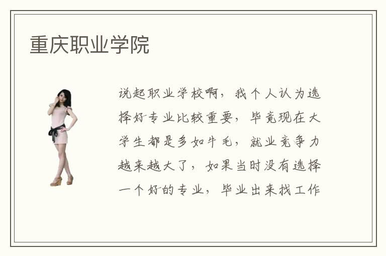 说起职业学校啊,我个人认为选择好专业比较重要,毕竟现在大学生都是多如牛毛,就业竞争力越来越大了,如果当时没有选择一个好的专业,毕业出来找工作还是有一定难度的,更不要说是这类职业学校毕业的了,选择专业更显得很重要,重庆职业学院应该是重庆这边一个地方性高职,一般每个城市都有这类学校的,有的学生初中毕业直接就去了,学一门技术也是一种出路,个人觉得蓝领薪资并不比白领薪资低,所以如果你现在去这类学校,要选择一个自己感兴趣就业率高的专业,重庆职业学院王牌专业你完全可以去问一下这个学校的在校生的,他们一般都比较清楚,如果学校教学经验丰富,如果有项目实践这个是最好的,先去学习理论知识,后面理论用于实践去实习还是很重要的,重庆职业学院实习单位,如果是校企合作项目学校就会安排实习机会的,这个你不用担心