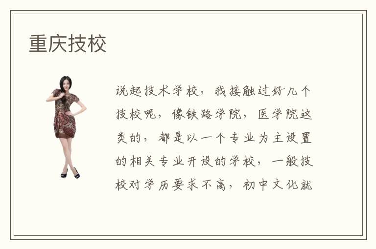 说起技术学校,我接触过好几个技校呢,像铁路学院,医学院这类的,都是以一个专业为主设置的相关专业开设的学校,一般技校对学历要求不高,初中文化就可以去,或者初中未毕业就可以去的,我一个亲戚的儿子就是初中毕业去学习汽修了,现在已经上班了,薪资我感觉还可以,他还是比较感谢当初选择上技校的,不然现在还不知道在哪一家流水线上工作呢,所以如果你选择去重庆技校,那就选择一个自己喜欢的专业,然后学好,毕业找工作问题就不大了 ,现在很多学校都是自己的实战项目的,我想重庆技校实战项目也有吧,个人觉得实战项目就相当于我们说的实践实习这些,如果实习去某个单位自身表现还不错,后面公司会给机会让转正的,现在技校有的是培训三个月,有的是一年多,还有三年的,主要是看你选择哪一个专业决定的,重庆技校培训时间长短也是由你选择的专业决定的