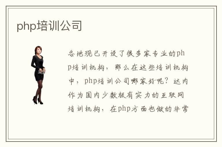 各地现已开设了很多家专业的php培训机构,那么在这些培训机构中,php培训公司哪家好呢?达内作为国内少数极有实力的互联网培训机构,在php方面也做的非常好,开设了丰富的php专业课程。然而达内的php培训学费大约在一万元左右,但是有就业保障,学员可以选择先就业后付款。虽然学习时间只需要4个月,但所学的技能知识足以比得上大学的四年学习效果了。