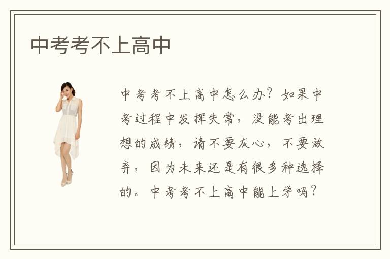 中考考不上高中考不上高中怎么办?如果中考过程中发挥失常,没能考出理想的成绩,请不要灰心,不要放弃,因为未来还是有很多种选择的。中考考不上高中能上学吗?答案是肯定的,即使没上高中,依然是可以继续上学的,只是不可以直接考大学。必须要接受高中教育,或者与之相等的学历才可以。具体有以下几种方法:一复读再考。这个方法比较适用那些考试临场失误而导成绩不理想的同学,如果初中阶段本身成绩就很差,那么复读一年成绩一般也不会有非常大的进步。二、如果你属于应届初中毕业生,正好可以就读职业高中。符合职高的招生标准。三、上中专学校,中专学校入学门槛会更低,也是不错的选择。四、高级技工学校,可以掌握一门专业技能,毕业就能直接进入岗位工作。所以中考考不上高中,依然可以上学,未来仍然充满希望的!