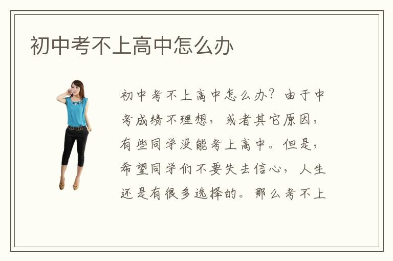 初中考不上高中考不上高中怎么办?由于中考成绩不理想,或者其它原因,有些同学没能考上高中。但是,希望同学们不要失去信心,人生还是有很多选择的。那么考不上高中的出路有哪些?具体来说,有以下几种:一是选择复读初三,准备再考一次。然后升高中,上大学。当然方式比较适合中考发挥失常的同学,如果初中成绩一直不好,那么这种方式会比较难。第二是,上职业高中。职高一般只招收应届初中毕业生,同学们初中毕业正好可以参加报名。职高的学期与普通高中一样为三年制。在校期间,学生除专业课程以外,还要上文化课。但是毕业后一样可以参加高考。三是上技校。技校作为技工学校,旨在培养专业技术,入学门槛非常低。技工学校毕业,学校颁发的为职业技术资格证书,并不属于普通高中的文凭。但是与普通高中学生一样是有资格参加高考的。并且凭此证可以到社会上直接上岗工作。初中考不上高中能学什么,如果想快点就业的话,那么就去读职高或是技校。在专业方面,最好优先选择高薪热门行业,比如计算机专业、电子商务专业、外语专业等等。都属于不错的选择。