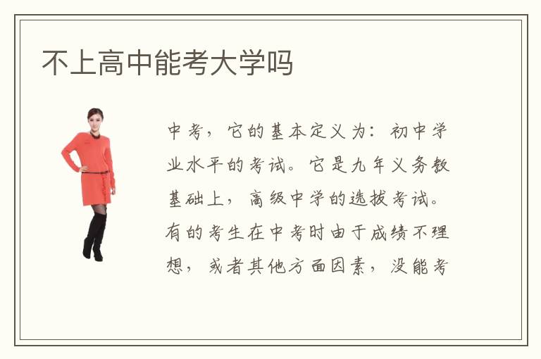 中考,它的基本定义为:初中学业水平的考试。它是九年义务教基础上,高级中学的选拔考试。有的考生在中考时由于成绩不理想,或者其他方面因素,没能考上高中。那么考不上高中不上高中能考大学吗,考不上高中怎么上大学?其实没考上高中的同学不必气馁,因为还是有机会上大学的。具体来说有四种办法:一是报考职业学院,因为高职院校也属于大学学历。二是考专科,这个相比于高考,会更容易些。通过专科以后,走专升本的路线,也是可以拿到大学本科的文凭。第三是成人高考,这个就没什么好说的了。第四就是复读初三。这个对于发挥失利的同学是一种选择,但是对于成绩非常差的同学,这个方法还是不推荐了。所以,问考不上高中能上大学吗,答案是肯定的。但是也有一点要注意,参加全国高考的必要条件是必须有普通高级中学中相等的学历,换句话说,即使没能考入高中也要就读与高中同等学历的学校,比如职业院校,才能有资格报名参加高考。