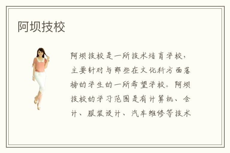 阿坝技校是一所技术培育学校,主要针对与那些在文化科方面落榜的学生的一所希望学校。阿坝技校的学习范围是有计算机、会计、服装设计、汽车维修等技术方面的学习。那么学习这些技术肯定就要有学习它的好处,阿坝技校学习的好处也就在于他们所选择的技术行业,比如男生头脑思维能力很强适合于学习会计,出去以后的工资也是比较高的,还比如男生热爱汽车可以学习汽车维修主要来针对于兴趣爱好来选择专业,这样以来他们会越学越有劲,也很有学习效果女生呢天性就是爱穿衣打扮所以学习服装设计就在合适不过了,将来可以为自己设计漂亮衣服还能拿到高薪工资,还能为社会进一步发展贡献自己的力量,提升了自己在社会生活中的价值。这样就是一举两得了。所以说开阿坝技校学习的好处就是这么多!