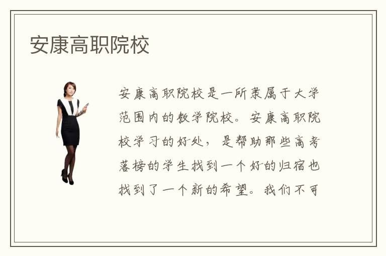 安康高职院校是一所隶属于大学范围内的教学院校。安康高职院校学习的好处,是帮助那些高考落榜的学生找到一个好的归宿也找到了一个新的希望。我们不可能顺对于高考落榜了学生一生就完了,就要现在投身社会去漂流再社会底层了,这样只是自暴自弃更加错误的一种做法与其这样窝囊的过着,为什么不来安康高职院校重新选择一条适合自己发展的一项专业。重新规划自己得人生呢?在安康高职院校学习好了一门职业,出了社会就有了自己的铁饭碗,有了自己稳定的经济来源。这样不比放弃学业在社会中漂泊一无所有的人强吗?所以来到安康高职院校,你们就再放手一搏总会有个好的结果的。一个疑惑大家的问题来了,安康高职院校的学费多少呢?这个学费问题还需各位学生家长朋友到安康高职院校专属官网找在线客服询问的。