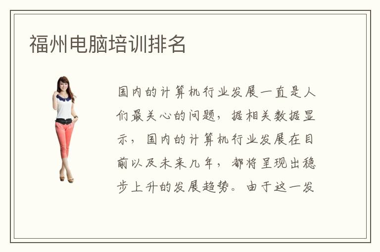 国内的计算机行业发展一直是人们最关心的问题,据相关数据显示,国内的计算机行业发展在目前以及未来几年,都将呈现出稳步上升的发展趋势。由于这一发展形势,越来越多的人开始加入到计算机行业的学习中去,但是选择一家靠谱的培训机构谈何容易。这时候,参考福州电脑培训排名,对于选择一家综合实力比较强的专业计算机培训机构有很大的帮助。
