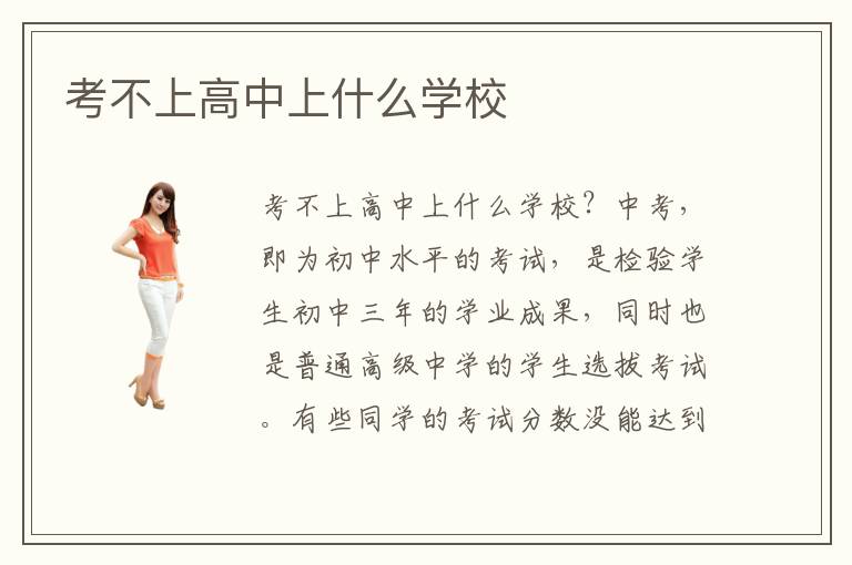 考不上高中上什么学校?中考,即为初中水平的考试,是检验学生初中三年的学业成果,同时也是普通高级中学的学生选拔考试。有些同学的考试分数没能达到高中的录取标准,遗憾落榜。那么考不上高中上什么学校比较好?其实同学们还可以选择读技校或者高职院校,掌握一门专业技术,终身受益。而且,技工学校的办学宗旨在于培养专业技术人才,更注重职业技术的培养。在招生标准上,对学生的成绩没有明确要求,而且也不仅限当届毕业生,往届毕业生也可入学。入学门槛相对较低。技工学校与普通高中属同一级别,毕业生依然可以选择参加高考。考不上高中学什么?在专业选择方面,最好根据自己爱好来选择。像厨师、电子专业、计算机专业、艺术设计专业、旅游专业、商务专业、电子商务专业等等。这些都属于比较热门的专业,而且薪资待遇方面都非常不错。