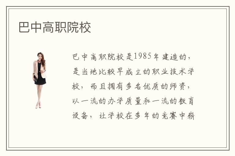 巴中高职院校是1985年建造的,是当地比较早成立的职业技术学校,而且拥有多名优质的师资,以一流的办学质量和一流的教育设备,让学校在多年的竞赛中崭露头角,也受到很多家长和学生的好评。巴中高职院校简介主要在于学校的特色也是非常突出的,通过大批的应用来改善学生的动手能力,目前已经培养了2万学生,为社会输送一批又一批人才。巴中高职院校优点是非常重视思想品德的教育,而不再只关注于学生的时间和专业技能,学校秉承着育人先育德的教育理念,十分重视学生的思想培养,旨在为学生培养尊师重道,积极向上,乐于学习,谦虚谨慎的复合型人才。而在专业方面也会通过实践相互结合,每个学生都有严格的训练和要求,充分的实践时间,让学生有更多机会亲自动手实践,培养良好的创新能力。