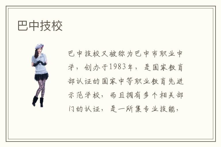 巴中技校又被称为巴中市职业中学,创办于1983年,是国家教育部认证的国家中等职业教育先进示范学校,而且拥有多个相关部门的认证,是一所集专业技能,就业培训等为一体的重点职业培训学校。这所学校占地12万平方米,投资3亿余元为学生打造一体化的机械加工实训基地,计算机培训基地以及电子科技,远程教育中心等等。巴中技校师资是非常优越的学校,拥有高级和中级职称的教师占60%以上,有编制的职工是194人,而且有30人被省政府和市区评为骨干教师,班主任等等,现在通过这些老师的带领下,很多学生能够寓教于乐,而且将自己的技术应用在实践当中,开发学生的潜能。巴中技校如何是很多家长都会特别好奇的,对于刚刚想要学习一技之长的学生来说,这所学校和高校商户联合打造互通的教育模式,资源共享,互利互惠,有助于让学生在名校的教育当中得到更多收获。