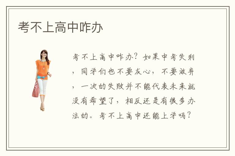 考不上高中咋办?如果中考失利,同学们也不要灰心,不要放弃,一次的失败并不能代表未来就没有希望了,相反还是有很多办法的。考不上高中还能上学吗?当然可以,并且还有很多选择。具体来说有以下几个方面:一是复读初三,重新备战中考,然后一步步升学。这个方法比较适用那些发挥失常导致成绩不理想的同学,如果本身在校期间成绩就非常差,那么还是不推荐了。二是选择职业高中。如果中考成绩不理想,那么职业高中也是一种不错的选择。职业高中级别与普通高中是一样的,毕业的同学是有资格参加高考的。而且,职业高中只招收应届初中毕业生,此时报名是最合适的时间点。三是选择技术学校学习一门专业技术。技术学校与普通高中还是有区别的,它的主旨在于专业技能的培训,并不注重文化课,所以毕业给学生颁发职业技术资格证,而不是相关文凭。考不上高中能学什么?如果想选择职高或技校,那么最好挑选热门行业,像:计算机、财会等都是不错的选择。