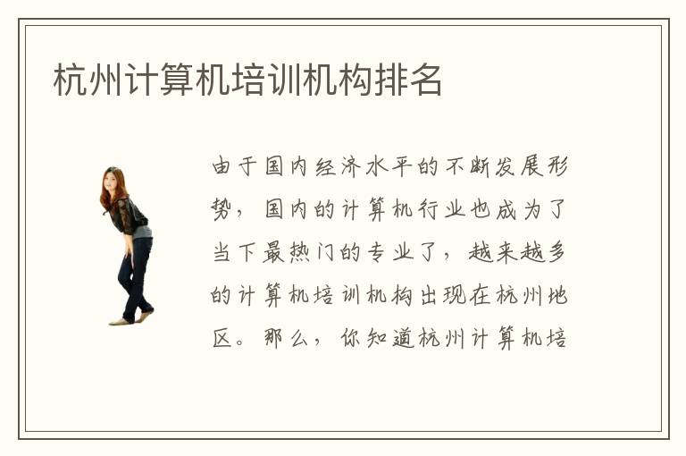 由于国内经济水平的不断发展形势,国内的计算机行业也成为了当下最热门的专业了,越来越多的计算机培训机构出现在杭州地区。那么,你知道杭州计算机培训机构排名吗?就综合实力而言,北大青鸟计算机培训机构自然是杭州计算机培训机构排名中名列前茅的,北大青鸟计算机培训机构是国内一流的it教育品牌机构,是一家各方面综合实力很强的专业计算机培训学校。