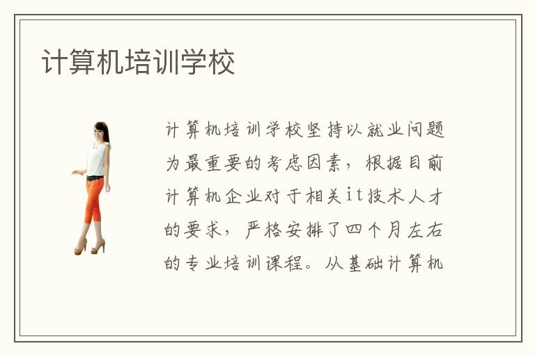 计算机培训学校坚持以就业问题为最重要的考虑因素,根据目前计算机企业对于相关it技术人才的要求,严格安排了四个月左右的专业培训课程。从基础计算机语言课程讲起,牢牢扎实学员的基础问题,这样学员们在今后的学习或者是工作中遇到困难的时候,就能迎刃而解了。努力在最快最短的时间内,帮助每一位学员成为优秀的计算机程序员。