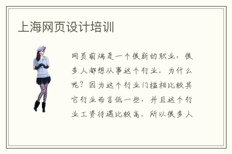网页前端是一个很新的职业,很多人都想从事这个行业。为什么呢?因为这个行业门槛相比较其它行业而言低一些,并且这个行业工资待遇比较高。所以很多人在学习的时候选择去上海网页设计培训设计培训学校进行专业的培训,因为上海作为网络技术比较成熟的城市,上海网页设计培训水平也是比较高的。不过,因为上海网页设计培训水平高,所以上海网页设计培训班有很多,很多人人在选择的时候都不知道该如何选择。所以,很多人都会根据费用的多少来选择学校。费用多的就认为是比较好的学校,而费用低的就被看成是水平非常一般的学校。实际上,并不是这样,费用并不是分辨一个学校好坏的标准。要想选择一所好的学校,最主要的还是要看自身情况。选择一所适合自己学习的培训学校,只有这样,才能使自己在学校中学习更多的知识,才可以自己更快进入这个行业。随着计算机时代的到来,一直备受人们关注的就是计算机技术,而计算机技术又分好多种,其中建网站就是其中的一种,学习建网站并不会枯燥,毕竟想着以后诱人的工作待遇就会静下心来学习建网站技术。学建网站不是说说就算了的,想持之以恒的学习建网站就得报个培训班学习一下,而大多数人都选择去上海学习建网站,因为上海的一些机构学校也建网站技术很专业,培养的学生也都个个是人才,在工作岗位中月薪6000不是梦想。学习建网站是很有用处的,大多数公司都需要自己建网站,而他们就必须得招聘会会建网站的专业人才,去上海学习建网站是最快最好的方法。学会之后终身受益,上海的这些网站培训机构都是专业有负责的,它们都是为了培养人才而建立。现如今学习一门技术是个流行趋势,而最受欢迎的技术就是网页设计,网页设计方面的人才真的是少的可怜,所以此专业的工作人员很吃香,不但工资高待遇还是挺不错的就连老板也是很看重的,国家最看重的就是这方面的人才。而学习网页设计不是光看理论知识就可以学会的,去专业的培训机构学习还是值得的,而上海网页设计培训设计的机构就不错,这里教学经验丰富环境良好,比起自己学做网页,去上海网页设计培训就要很轻上海网页设计培训好吗松。人千万不要懒惰,不要逃避,多学一些东西肯定是多受益上海网页设计培训怎么样的。如果你是学生党正在犹豫不决不知道学什么技术好就考虑去上海学网页设计专业,如果你已经参加工作郁郁不得志就去学习网页设计这门技术,会让你升职加薪。会让你今后的人生开个挂,而去上海网页设计培训会让你实现目标更近一步。