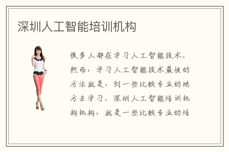 很多人都在学习人工智能技术。然而,学习人工智能技术最快的方法就是,到一些比较专业的地方去学习。深圳人工智能培训人工智能培训机构机构,就是一些比较专业的培训机构。在深圳人工智能培训机构机构里面学习,学到的都是,关于人工智能方面的专业知识。深圳人工智能培训机构机构,有着非常多的培训人才方面的经验,每年都会培训出非常多的人才。深圳人工智能培训机构机构,培训,方式也比较独特。很多学员在深圳人工智能培训机构机构里面学习,感觉比较轻松。可以快速就能学会人工智能方面的专业知识。所以学习人工智能方面的,技术,就到深圳人工智能培训机构机构里面学习。在深圳人工智能培训机构机构学习的话完全可以放心,学到的都是非常多的专业知识。所以有很多想要学习了解人工智能方面知识的学员,都选择到深圳人工智能培训机构机构学习。人工智能算得上是当下一个比较高科技和新型的行业。人工智能的开发也在一定意义上算得上是人类技术能力的进步和升级。在人工智能这一块,还是比较考验开发者的能力的,需要开发者具备比较强的计算机能力,一定的心理学知识和哲学理论。是一个理论和技术强强结合的行业。深圳人工智能培训机构正在火热的招生中,其中深圳人工智能培训机构课程开设的课有:计算机与心理学的应用,哲学等;这些课程的研发都是根据当下人工智能行业的现状而研发制定的,比较具有现实的开发和培训价值,培养一批优秀的人工智能人才也正是当下国家和社会急需的,可以说人工智能的发展可以很大程度上让一个国家发展得更快,更具有说服力。因此,深圳人工智能培训机构发展前景是非常不错的,但是在发展过程中也许会遇到困难,是机遇和挑战并存的局面。人工智能技术作为21世纪引领发展的一种革新性技术,在这些年国家的经济和互联网,大数据以及计算机的一系列发展之下,人工智能开始了更进一步的发展,开始走向了跨领域合作,人与机器的协和,群体智能开发,自主操控等新的阶段。这些技术在不就得将来对人类生活的方方面面都产生翻天覆地的影响。深圳人工智能培训机构是一个培训人工智能的培训机构,这些深圳人工智能培训机构机构由多所机构组办而成,是当地专业化培训人工智能的地方。深圳人工智能培训机构机构开设的课程有:计算机应用,心理学,哲学,道德观等课程。可以说人工智能行业是一个技术和知识以及精神要求极高的高科技行业。它不在仅仅局限于人工智能行业或者是互联网行业,它是很多行业的综合才构成的人工智能。当下深圳人工智能发展前景如何呢?当然是很好的,很具潜力的,但是由于技术的革新非常快,对于开发者的要求非常高,我国在人工智能的人才储备又是非常少的,所以有很大的市场需求。