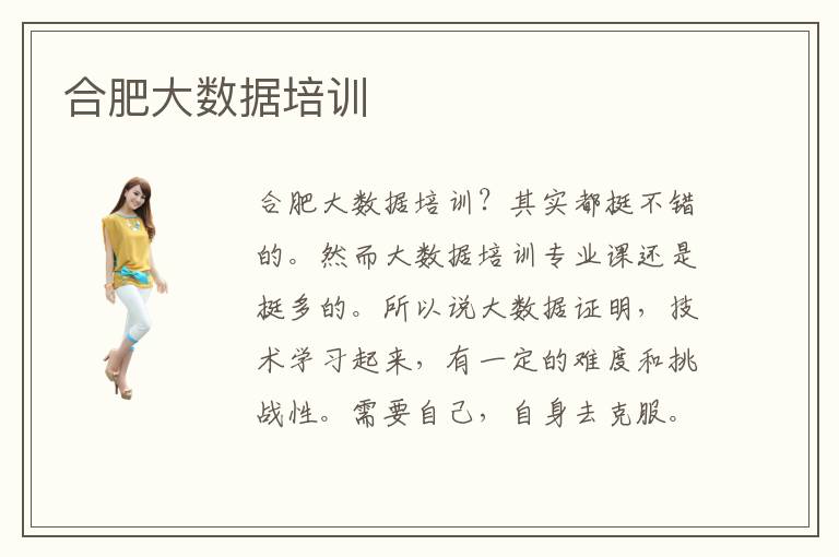 合肥大数据培训?其实都挺不错的。然而大数据培训专业课还是挺多的。所以说大数据证明,技术学习起来,有一定的难度和挑战性。需要自己,自身去克服。慢慢,深入了解大数据技术,你就会发现,学习大数据技术没有自己想象当中的那么的困难。学习大数据技术,需要学习的专业课非常的多。这些大数据专业课一定要认真去学习。每一门大数据专业课程。都关系着自己的命运。学习的好了之后,才可以完全掌握大数据知识。以后自己才会有更好的待遇。如果不去,认真对待学习过程,之后,在找工作方面就会落后于人。受别人的奚落。也是用人单位的冷眼。所以说趁现在还来得及,抓紧时间学习大数据技术,然后,掌握这些大数据专业课。就可以了。以后就都不用担心。如今大数据技术那么的火热。学习大数据技术的人又那么多。那么大数据培训机构里面的学员多吗?其实还是挺多的。毕竟现在的人也都变得聪明了。也都明白了,想要快速学会大数据技术,到大数据培训机构里面学习是比较好的方法。所以说大数据培训机构里面的学员非常多。而合肥大数据培训的情况,在这我就不多说了。大数据培训机构是非常重要的一个存在。可以为这些想要学习大数据技术的学员,提供一个专业的地方。可以让他们静下心来学习。所以说不要抵触大数据培训机构。因为这些大数据培训机构的存在,就是为了帮助你们去学习大数据技术。如果说,都不想要到大数据培训机构里面去学习大数据技术的话。那么将不会有人真正的能掌握的大数据技术了。有那么多的大数据培训。具体合肥大数据培训呢。当然在每个区域都有着不错的大数据培训存大数据培训专业课很多吗在。所以说就不要非得比较一个好坏。只要说你进行大数据培训之后,能学到知识,那他就是比较好的。有一些人想要问,我了解一下大数据技术需要,大数据培训吗?当然需要。你不去进行大数据方面的专业培训那到什么时候才可以真正的学到专业的大数据方面的知识呢?这是一个快节奏的时代。不允许任何人拖拖拉拉。想要学习大数据就赶紧去学习大数据,快速的去学习大数据。有那么多的大数据培训中心帮助你,你又担心什么呢?只要努力的学习知识就好了。不要说等到自己的年龄上去了,工资却从来不涨,然后再想到去学习大数据技术,那到时候就晚了。因为到时候大数据相关的人才就不会说像现在那么的稀缺。
