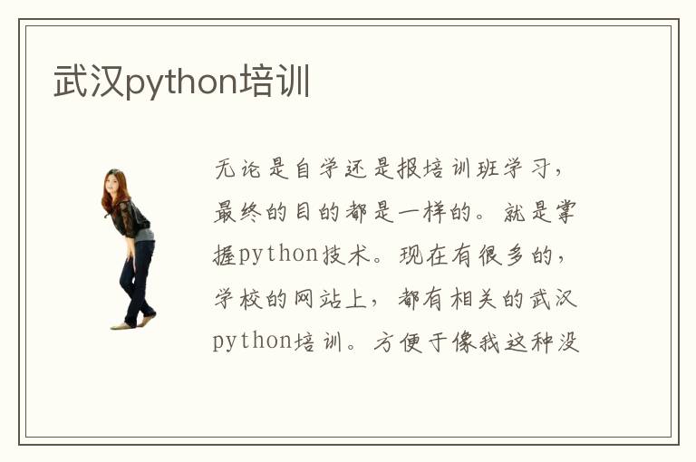 无论是自学还是报培训班学习,最终的目的都是一样的。就是掌握python技术。现在有很多的,学校的网站上,都有相关的武汉python培训。方便于像我这种没有时间去学习,技术的人来去观看。我最开始学习的时候。连python最基本的定义都不知道!但是通过观看一段时间的学习视频之后。我慢慢的掌握了很多python专业知识。从最开始的不懂到现在的大懂,中间也就经历了几个月的时间。可能python这种编程需要比其他的编程需要要好学的多吧。所以说我没有觉得,观看学习python需要花大量时间。反而我觉得这大大减少了我的时间。比起利用全天的时间破的,培训班里面学习,我更加的喜欢这种观看视频的学习方式。可以自己自娱自乐的,轻轻松松的学习知识。在武汉python培训上面学习python技术,学习效果好吗?武汉python培训,也都是各大高校建立的,上面的教师,都是专业在校任职人武汉python培训对学习有帮助吗员。他们每天都会有自己的空闲时间,在武汉python培训上面传授知识给学员。python作为一门编程语言,需要我们大家去学习的专业知识,非常的多,所以,我们没有太多时间耗在培训班里面学习,就可以通过学习网站学习。效果都是相同的。就连以后就业方面,用人单位一样会一视同仁。python学习起来是特别需要耗费时间的,通过学习网站学习起来就会大大的缩短时间。也可以更好的积累经验。武汉python培训上面所传授的课程都是针对企业用途的专业。方便我们大家以后在找工作方面,专业对口。企业会更加愿意用我们。在课上老师们的讲课速度都非常的快,以至于掌握这种反应相对慢一些的学生,学习起来python技术就会抓不住重点。这就需要课下多加的翻看武汉python培训,因为这上面详细的记录了老师们所讲过的各种知识点。非常的详细。武汉python培训上面也会有一些实际的操作问题,可以让我们多多积累经验。这些资料都是专业的帮助我们学习的资料。python学习起来并不难,但是python要学习的课程非常的多,而且分化也很多,就需要我们认真的去学习。python这门技术一旦掌握后,在以后的就业方面会非常的受欢迎,各大企业都会聘用我们。每个月薪资也会非常的高。也会受企业重用。现在学习python吃点苦算不了什么。以后,就都会得到体现,有很多帮助。