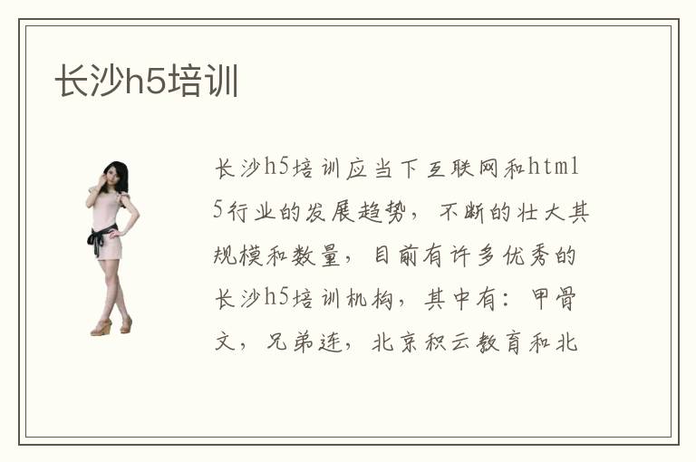 长沙h5培训应当下互联网和html5行业的发展趋势,不断的壮大其规模和数量,目前有许多优秀的长沙h5培训机构,其中有:甲骨文,兄弟连,北京积云教育和北大青鸟。在当下的网站开发,主要就是为一些企业用人单位或者是组织机构开发出专业性比较强的动态网页,例如ASP、html5、JSP网页。网页开发者可以说是好几个职业的组成部分,涉及平面设计师,软件开发者,后台编程师等,所以说网站开发设计比较强的综合操作能力。这些长沙长沙h5培训机构就是专业培训网站开发工程师的地方,一般它们的培训周期不会很长,在3-6个月左右,集中培训,时间灵活且高效。另外再说说长沙h5培训学费,据了解这些培训机构的学费在10000-15000之间,虽然前期付出的会比较多,但是在培训的课程和内容上会得到很好的体现,只要你用心学,一定会有所回报的。html5前端技术主要考验制作者的设计能力,交互能力和一些计算机语言编程能力。可见html5前端设计师是一个综合能力比较强,职业要求比较高的职位。长沙h5培训在当地办的很好,面向广泛的受众群体,得到了大众的良好评价,那么其中办学成果良好的微泵前端培训机构有哪些?据了解,包括北大青鸟,北京积云教育,中软卓越,兄弟连和甲骨文在内的五所html5前端培训机构广受用户好评,并且办学成果优良,几年来,为不少企业和单位培养了扎实能干的html5前端人才。那么长沙html5前端发展趋势如何呢?因为北京的html5前端技术发展得非常快,这一方面的人才更新换代得快,对于职业的要求比较高,竞争很激烈。总的来说发展前景一片良好,但是由于技术和行业更新换代得快,就职于该职位一定要多多充实自身,提升自我专业素养。随着计算机的蓬勃发展,学习网站开发技术的人也越来越多。他们都选择到长沙h5培训机构里面学习网站开发技术。在长沙h5培训机构里面学到的知识都是非常专业的知识。而且长沙h5培训机构里面的教学设备都是非常齐全的,在这里学习的话,可以得到非常好的操作体验。长沙h5培训机构,都是一些特别专业的培训机构。很多在长沙h5培训机构里面学习过的学员,现在都掌握到了非常多的关于网站开发方面的专业知识。长沙h5培训机构建立历史悠久,所以在培养人才方面有着非常多的经验。选择到长沙h5培训机构里面学习网站开发技术的话,完全可以放心,一定能学到非常多的专业知识。长沙h5培训机构,环境优美,特别适合学习。