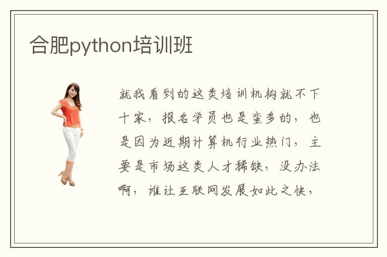 就我看到的这类培训机构就不下十家,报名学员也是蛮多的,也是因为近期计算机行业热门,主要是市场这类人才稀缺,没办法啊,谁让互联网发展如此之快,都是搭上互联网的顺风车了,和计算机相关的python培训班也是百花齐放,合肥python培训班我想也是如此,报名学习的人数都在增加,合肥python培训班也是看你选择哪一个机构呢,每个机构的教学模式都不一样的,不过现在很多教学模式都是线上线下结合教育的,合肥python培训班教学模式应该也有这种的,我个人更偏向于面授课,这样学习效率高一些,如果只是单一线上授课,那和自学差不多的,可能是自己自觉性不够好,学习能力一般般,所以就觉得面授课容易接受,而且合肥python培训班在线听课也是可以的,也有免费试听课程的,你直接去网上找一下就有很多这类课程视频,当然也有的要收费的
