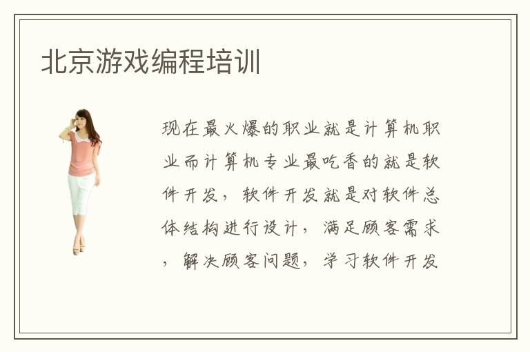 现在最火爆的职业就是计算机职业而计算机专业最吃香的就是软件开发,软件开发就是对软件总体结构进行设计,满足顾客需求,解决顾客问题,学习软件开发还可以报考软件工程师。想学好软件开发这门专业不能只是自己在家学习最好是去培训机构学习,在中国最领先最专业的软件开发培训机构在北京,北京的软件开发培训是最专业的,在北京每十个人里面都会有五个六个都报过培训班,在北京游戏编程培训上课会得到专业的指导,学到过硬的技术。北京游戏编程培训编程培训机构相对比其他地方的培训机构要好得多,这里的每一所软件培训机构都有着专业的教师力量,不愁你学不到深层技术,只有在这些培训班学习才能学到好的软件开发技术。有了一门好的技术无论是在工作上还是在社会地位方面都会有大大的提升。说到软件开发技术就不得不提北京的软件培训班,在北京,像这种软件培训班到底好不好主要看它的师资力量,一个专业的教学水准和教学质量主要看这个专业的教师是怎么样的。北京的这些软件培训班老师们都是经过过严得技术考核才允许授课,这些教师都在该行业获得过相关的证书,有着五年以上的授课经验,对学生极有耐心极其的负责,不论是学习上还是生活中都会对学生无微不至的关怀,运用寓教于乐的方法让学生们开开心心的玩,开开心心的学习,进行过培训的学生在社会上个个是人才。在就业方面老师会进行一对一指导,帮助学生选择一份好的工作岗位。虽然软件开发技术学起来很枯燥很难,但是在北京报个软件培训班就会让你学起来感觉轻轻松松,有什么不懂不会的可以和老师和同学们交北京游戏编程培训怎么样流。现在大环境所致所有人在学习所以报个培训班就是最快更好的学到专业知识。北京的软件开发学校有很多想了解具体都有哪些的话可以来北京转转看看,现在软件开发行业时最火爆的相关的专业人士也是最吃香的。他们的工资待遇不是一般人可以比较的,其实软件开发技术学起来并不难,只是可能你没有找到合适的学校或老师,北京这里的软件培训学校都是不错的,它们的教材设备都是最新最先进的,四周的环境优美鸟语花香,北京软件开发学校的师资力量也是非常雄厚的,老师们不仅是这方面的专业型人才,也都非常的有经验,和其他地方性小学校相比较北京游戏编程培训都挺不错北京游戏编程培训有哪些的。当然这么好的学校学费也不高比起其他地方的学校要便宜得多。北京是一个人才济济的地方,但是每个人都不是生下来就都是天才的,所以才会有这些学校的诞生,就是为了培养出更多更专业的技术型人才。