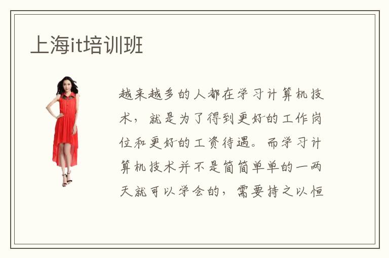 越来越多的人都在学习计算机技术,就是为了得到更好的工作岗位和更好的工资待遇。而学习计算机技术并不是简简单单的一两天就可以学会的,需要持之以恒,认认真真的去学习计算机技术,这样才能学到专业知识。计算机技术虽然火爆但是还是不难学习的,上海it培训班就会帮助学习计算机技术的学生更好的去学习计算机技术。上海it培训班确实是挺多的但是他们在教学方面都是非常有经验而专业的,所以在上海it培训班培训学习会更快的学好计算机技术。自己一个人默默的学习计算机技术当然比不上在专业的学校学习学的更快更专业。计算机技术如此的受大家欢迎还是需要好好去学习的。学习过计算机技术的人员都在自己的工作上面取得了很好的成就。也备受老板们的喜爱。电脑学校主要是指计算机应用培训和网络工程培训学校,旨在培养中高级计算机人才的教育培训学校。上海it培训班有上海计算机学校,上海博文电脑学校,上海北大青鸟等等,这些电脑学校的入学门槛低,上海it培训班录取条件非常简单,可说是面向社会各阶级招生了,不管你是学生,还是退伍军人或者是在职人员,只要你有一个想学的心,那么就可以了。这些上海it培训班开设的课程一般包括:电脑基础操作教学,网页设计,平面设计,软件开发,程序开发等等开设一系列电脑操作课程,课程的开设也是根据几年来的热门行业以及高薪行业的专业相对应开展,符合当下社会情况和中国国情。这些上海it培训班的老师大多数来自各大企业和单位,不仅具备扎实的理论知识,还有丰富的工作经验。在it行业成为大众受欢迎的行业影响下,计算机专业也一跃成为当下热门专业,成为许多大学生向往的专上海it培训班有哪些业。因此每年7-8月报考计算机学校的人也非常多,报考人数普遍高于其他专业,也是很多高校重点培育的专业。目前,上海it培训班有:上海北大青鸟,上海新华电脑学校,图灵教育it学院等等,这些都属于优秀的上海it培训班。那么这些上海it培训班办学特色是什么呢?第一:精细化教学,注重学生职业技能的培养;二:学校开展大型实际项目,学员参与其中,积累经验。三:注重综合素质和职业素养的养成。这些上海it培训班的培养方案与一般高校略有不同,但是效果斐然。可以说这些上海it培训班的毕业生在就业上不会遇到很大困难,因为在校培育了职业技能的操作和实际项目的运行开展,积累了非常多经验,比较能适应职场生活。