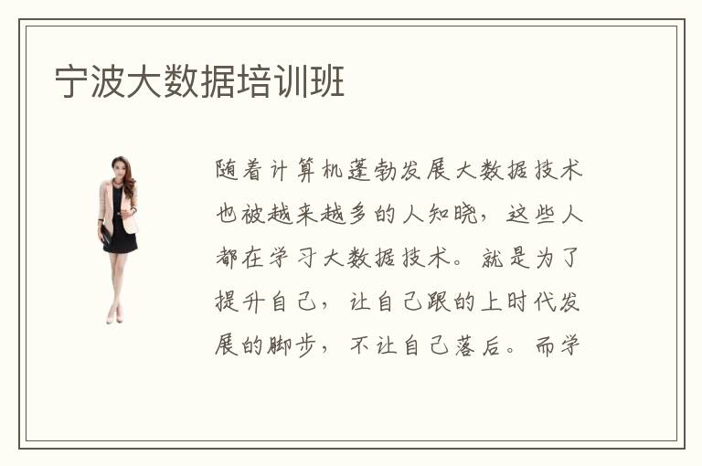 随着计算机蓬勃发展大数据技术也被越来越多的人知晓,这些人都在学习大数据技术。就是为了提升自己,让自己跟的上时代发展的脚步,不让自己落后。而学习大数据技术并不是一天两天就可以学会的。首先,你得选择一些比较专业的培训机构去学习。而宁波大数据培训班机构就都是一些非常专业的机构。在学习大数据方面,他们非常有经验。宁波大数据培训大数据培训班机构培训水平特别好。宁波大数据培训班机构,每年培训出特别多的人才。所以想要学到专业的大数据方面的知识就得到宁波大数据培训班机构进行培训学习。所以大部分的人都选择到宁波大数据培训班机构进行培训学习,大数据技术。就是因为宁波大数据培训班机构确实很不错。特别值得大家信赖!在宁波大数据培训班机构学习过的学员,现在都有了不错的成就。互联网的飞速发展给予了大数据和云计算很宽阔的发展空间,作为当下非常热门的信息集成和信息收集技术,大数据开启了属于它的新纪元。宁波大数据培训班的许多机构也因此应运而生。这些宁波大数据培训班机构有哪些呢?具体比较好的宁波大数据培训班有:宁波北大青鸟,宁波新华电脑学院,中软卓越,北京积云教育等。在教学上,这些宁波大数据培训班班通常采用小班制面授教学的方法,这样有助于教师了解学员情况,也有助于大家学习效率的提高,培训班重点培育学员的实际操作技能,在培训中后期安排实际项目的考核,从而获取丰富的项目资源和项目经验,拓宽往后的就业渠道。另外来说说在宁波大数据工程师薪资待遇,由于宁波是一座比较发达的沿海城市,人口众多,当然就业岗位也比较多,目前对于大数据工程师的需求也是很大的,成熟的大数据工程师薪资待遇在15-20k左右,可以说是当下社会的高薪职业了。大数据技术是最近两年比较火爆的技术。学习大数学技术比较有发展前途,毕竟从事大数据技术方面的人才特别稀缺。所以越来越多的人都认为学习,大数据技术非常的有必要。当然想要学好大数据技术并不是简简单单就可以学会的。首先得选择一些比较专业的培训班去进行专业的培训学习。宁波大数据培训班就都非常的专业,宁波大数据培训班班每年都会培训出大量的专业性人才。所以宁波大数据培训班班,是非常有培训经验的。想要快速的学好大数据技术,就选择到宁波大数据培训班班学宁波大数据培训班班培训经验多吗习。在宁波大数据培训班班可以轻松地就掌握大数据专业知识。所以很多对大数据技术有兴趣的人,都选择到宁波大数据培训班班学习。在宁波大数据培训班班学习过得人。都说在这里确实可以学到专业的知识。