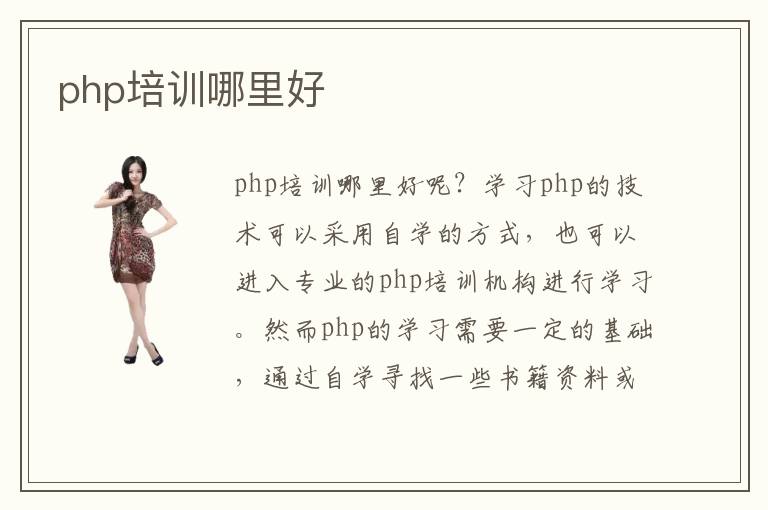 php培训哪里好呢?学习php的技术可以采用自学的方式,也可以进入专业的php培训机构进行学习。然而php的学习需要一定的基础,通过自学寻找一些书籍资料或是视频教程,对于一些基础比较薄弱的同学是比较困难的,自学也是一个比较漫长比较枯燥的学习过程。因此,越来越多的人开始学习专业的php技能知识,那么,专业的php培训机构哪里比较好呢?