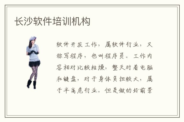软件开发工作,属软件行业,又称写程序,也叫程序员。工作内容相对比较枯燥,整天对着电脑和键盘,对于身体负担较大,属于半高危行业。但是做的好前景是非常可观的,收入也非常高的。长沙软件培训机构,长沙软件培训软件培训机构班收费标准一般从几千到上万不等,这个具体要看培训的内容与课程的长短。如果想选择一个好的培训班,建议不要只盲目的从价格上面判断,最好自己实际去培训机构考察一下,并且多方面去了解,比如培训机构的口碑、老师的的教学质量等等。软件开发培训多久能工作?软件开发不是一朝一夕就可以学会的,这个与个人的基础和老师的教学都是相关长沙软件培班教学的。举个例子,比如英语不好的同学,那么想学习软件就会比英语基础好的同学困难许多,因为软件开发需要用到很多国外的软件。就算培训结束后,软件行业也需要不断的学习,不断积累。只有这样才能在这个行业里做到优秀。软件开发,是软件行业,具体的工作内容就是整日对着电脑编写程序代码。目前国内的互联网发展迅猛,伴随智能时代和大数据时代的来临,对软件行业人才的需要越来越大。所以,软件行业从业者的发展空间可以说非常广阔。如果喜欢计算机行业,可以考虑报名一个正规的软件培训机构系统的学习一下这项专业技能。长沙软件培训机构非常多,面对市面上眼花缭乱的宣传,很多人都不知道该怎么选择。想选择长沙最好的软件培训班教学,这个不能单单看市面上的广告宣传。因为没有哪家培训机构就是最好的。在选择时一定要多去实地了解;了解培训机构的教学质量,教师的口碑、教学的环境等等等,这些因素非常关键。只有在多家培训机构之中多做比较,才能选出最适合自己的培训机长沙最好的软件培训机构构。现在的每一款电子产品都离不开编程这类的,我们熟悉的手游这类的,也是和编程代码有关,这类公司对于人才需求还是蛮大的,相应出现这类计算机培训机构,长沙软件培训机构也是大家热议的话题,主要是后期好就业,而且薪资待遇还不错,所以长沙软件培训机构机构也增多了,大大小小培训机构都出现了,很多不知名的培训机构也是到处打广告,我路过也收到过这类广告宣传单的,当然不排除有的培训机构还是可以的,教学质量不错,线上线下都可以学习,对了,现在不是还有手机上软件学习的嘛,可以随时随地学的,感觉还不错 至于你说的好的长沙软件培训机构有哪几个这个问题,怎么回答呢,如果我说好一定带有主观性,建议你去网上看到的长沙软件培训机构的口碑排名,可以参考一下排名靠前的几个培训机构,比较一下看看哪一家性价比高