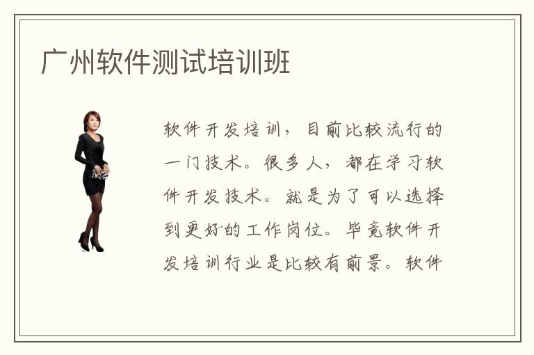 软件开发培训,目前比较流行的一门技术。很多人,都在学习软件开发技术。就是为了可以选择到更好的工作岗位。毕竟软件开发培训行业是比较有前景。软件开发培训专业方面的人才也是非常的稀缺。所以学习软件开发培训结束,成了大多数人的选择。而学习软件开发培训机构最好的机构在广州。广州软件测试培训班机构建立之初就是为了培训人才。当然,广州软件测试培训班机构培训经验是非常多的。在广州软件测试培训班机构培训的学员也非常的多。所以每年广州软件测试培训班机构都会往社会当中输入大量的。做出了不少的贡献。有越来越多的人都选择到广州软件测试培训班机构,学习软件开发技术。毕竟软件开发技术是非常吃香的嘛。广州软件测试培训班机构,都是一些比较负责任的一些机构。在这里完全可以放心,能学到专业的技术。有越来越多的人都在学习软件技术。但是想要学好软件技术并不是那么轻松的。首先你得选择专业的地方去进行专业的培训。这样才能更好的快速掌握软件技术。广州软件测试培训班就非常的专业。广州软件测试培训班建立比较久。这样说的人才非常的多,所以广州软件测试培训班培训经验非常多。很多学习软件技术的学员都选择到广州软件测试培训班学习。在这里,他们可以很轻松的就能掌握软件技术。在这个电子蓬勃发展的时代。如果不掌握一门技术的话是很难,在这个社会当中生存的。有越来越多的人,都在学习软件技术,就是为了更好的适应这个社会。在找工作方面掌握一门专业技术,会比较轻松,就能找到合适的工作岗位。很多人在广州软件测试培训班培训过后,都觉得这里的培训班非常的好。软件技术是比较有前景的,一门专业性技术。从事软件行业的话是比较吃香的。所以越来越多的人都选择去学习软件技术。当然,学习软件技术是一项很不错的选择。而学习软件技术,很不错的地方在广州。这里的软件培训学校都非常的专业。广州软件测试培训班,都非常的有培养人才方面的经验。所以很多人在广州软件测试培训班学习起来会非常的轻松。他们完全可以掌握专业性的知识。广州软件测试培训班教学设备非常的齐全。广州软件测试培训班非常注重培养人才。广州软件测试培训班,为了学生们可以得到更好的,操作体验。每年都会对这些设备进行升级更新。所以,在广州软件测试培训班学习的话,实际操作课上可以体验到很多在其他地方体验不到的感受。在广州软件测试培训班学习软件技术是比较独特的过程。所以在广州软件,培训学校学习的学员非常的广州软件测试培训班培训经验多吗多。
