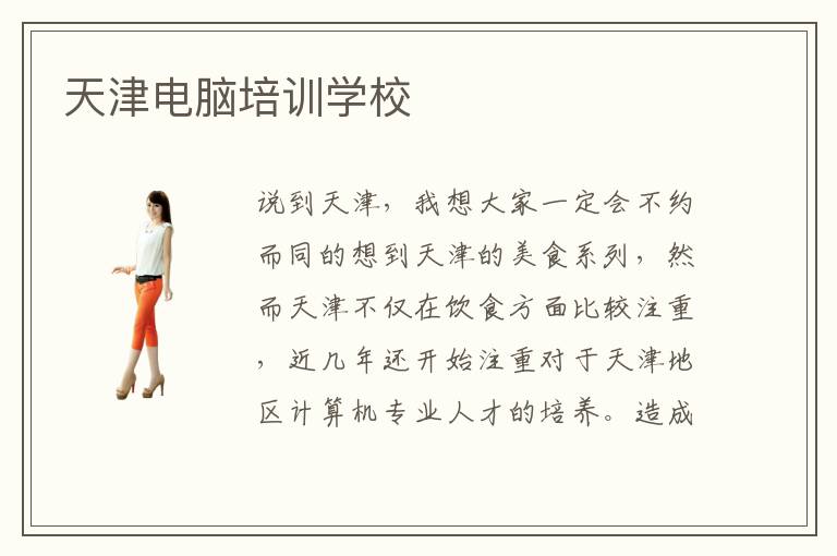 说到天津,我想大家一定会不约而同的想到天津的美食系列,然而天津不仅在饮食方面比较注重,近几年还开始注重对于天津地区计算机专业人才的培养。造成这一现象都是因为,从各大招聘网站上显示,天津各大计算机企业都在大量招聘优秀的计算机程序员,可见it市场对于人才的渴求。而天津电脑培训学校也成了大家想要学习计算机专业知识或是提高计算机技能,最常用的途径。