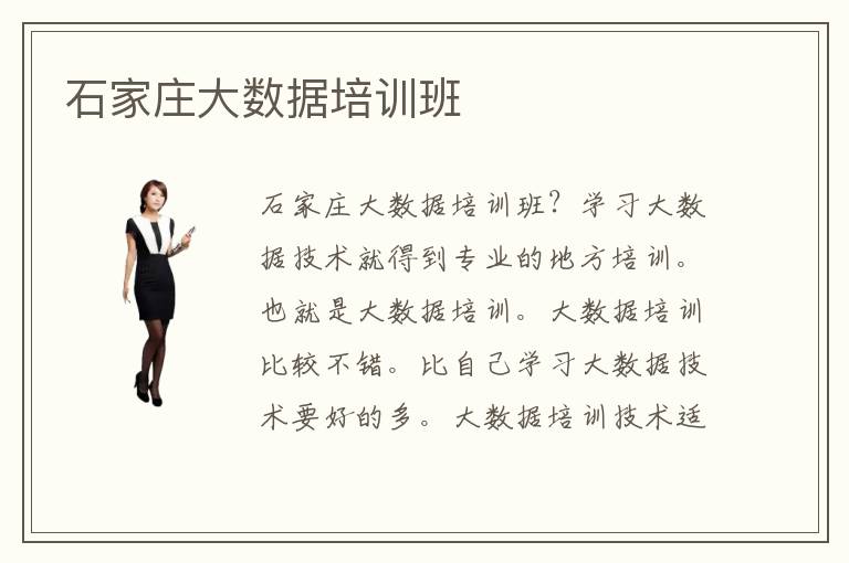 石家庄大数据培训大数据培训班?学习大数据技术就得到专业的地方培训。也就是大数据培训。大数据培训比较不错。比自己学习大数据技术要好的多。大数据培训技术适合很多人选择。学习大数据技术,比较,的困难。所以,选择大数据培训技术。大数据培训技术专业性非常的强。所以很多学习大数据技术的,人员都选择进行大数据培训技术。而且大数据培训非常的好。想要掌握好专业的大数据方面的知识,就得进行大数据培训。只有经过大数据培训,才能了解大数据技术方面的专业知识。学习大数据技术的人越来越多,所以进行大数据方面的培训,非常的有必要。可以优先,比其他人学会大数据方面的专业知识。学习大数据技术就是比较的吃香。在未来就是有着非常不错的发展前途。石家庄大数据培训班?大数据学的专业课程非常的大数据培训技术专业性强吗多。因为大数据技术,有非常多的技术方面的课程。想要完全掌握大数据方面的专业技术。就得从基础的知识开始学起。大数据学的课程丰富多彩。想要快速的掌握大数据技术就得,静下心来,慢慢的去学习这些课程。所以说大数据学的课程非常的多。不能着急。需要一点点从基础知识开始学习。只有扎稳基础的知识,才可以更好的掌握大数据技术。大数据学的课程,都是一些有实际用途的。越来越多的人都在学习大数据技术。但是大部分人都没有关于大数据技术方面的基础知识。 所以都需要从头学习。从最简单的一些操作开始学习。慢慢积累才可以,学会大数据方面的专业知识在就业方面有着非常不错的,更多的岗位方面选择。石家庄大数据培训班?大数据,学习起来,需要有认真态度。长久的坚持下去才可以学会。大数据学习起来并不是特别的简单。需要一点点,慢慢的从简单的,知识开始积累。才会慢慢的掌握大数据方面的知识,技术。许多人都在学习大数据技术,其中最快速的方法就是选择一些,培训班或者培训机构去学习。毕竟大数据学习起来,并不是特别的简单。需要一些专业的教师和专业的机构来进行专业的培训,你才可以快速的学会大数据方面的专业,技术。这样即使在未来工作上面也都比较的从容。发展方面也非常的,有前景。石家庄大数据培训班才可以,掌握到其中的,精髓。需要一些专业的,人才教师来对你进行,专业的培训学习才可以。所以说,看见别人学习大数据技术,并不用特别的着急,因为这门技术并不是特别的简单,就可以学会。