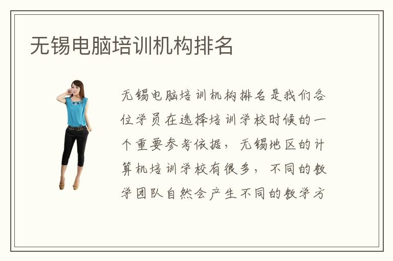 无锡电脑培训机构电脑培训机构排名是我们各位学员在选择培训学校时候的一个重要参考依据,无锡地区的计算机培训学校有很多,不同的教学团队自然会产生不同的教学方式,要想选择一家适合自己的靠谱的培训机构,就需要大家进行对于各大专业计算机培训机构的多方面因素的反复比较、不断筛选。而参考无锡电脑培训机构排名将会让你高效率的选择到合适的培训学校。