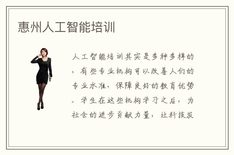 人工智能培训其实是多种多样的,有些专业机构可以改善人们的专业水准,保障良好的教育优势。学生在这些机构学习之后,为社会的进步贡献力量,让科技发展变得更加迅速。惠州人工智能培训介绍一方面可以先了解一下环境的质量,老师的水平,教学优势,每一年的获奖情况等等,有些老师的专业水平不错,而且学生也能抓住自身的优势和可能存在的缺点,进行有效的提高。惠州人工智能培训有哪些优点,主要是小班教学,一个班只有十多个人,老师能够和学生的交流机会更多,了解学生可能存在的缺点,进行有效的弥补。惠州人工智能培训教学方法大多数都还是小班授课,也会更加重视理论的实践,将比较难理解的知识通过实践应用,让学生可以更简单理解,也能减少学习的压力负担,提高学习的兴趣。