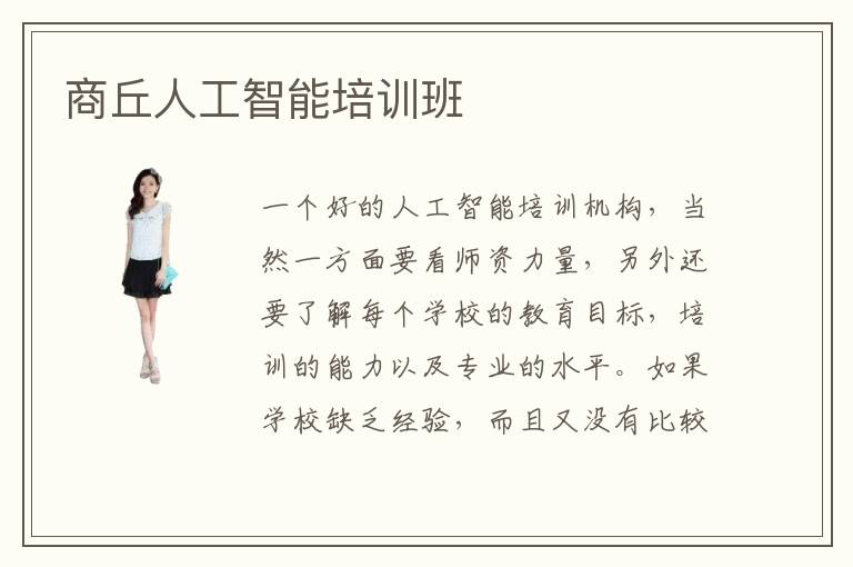 一个好的人工智能培训机构,当然一方面要看师资力量,另外还要了解每个学校的教育目标,培训的能力以及专业的水平。如果学校缺乏经验,而且又没有比较严谨的老师,那么未来的就业发展可能要处于劣势。如果想要找到好学校,当然可以从好多方面来决定。商丘人工智能培训人工智能培训班哪些好,可以找力量雄厚,专业技能强,教学经验丰富的学校类型。现在大多数学校都是缺乏经验,滥竽充数,所以要大家慧眼识珠。商丘人工智能培训班教学成果其实都还不错,但学校的教学成果只是其中的一个方面,在学习人工智能知识的时候,有些人会觉得优势并不是特别明显,因此常常会感觉到自卑,或者是不愿意和优秀的人在一起。但不管怎么样,只要努力学习,一点一滴的积累,未来肯定是有自己的舞台。
