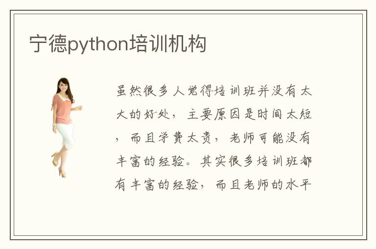 虽然很多人觉得培训班并没有太大的好处,主要原因是时间太短,而且学费太贵,老师可能没有丰富的经验。其实很多培训班都有丰富的经验,而且老师的水平越来越高,主要是因为很多培训班也意识到自己的教学质量,希望不断提高,为学生提供更多专业前沿的知识,保障未来的就业优势。宁德python培训机构就业好吗,其实大多数学校都能达到90%以上,很多学校都有不错的老师,采用先进的教学模式,让学生在学习的过程当中能够提高学习效率,减少学习的时间。宁德python培训python培训机构挑选有规律吗,首先要看老师的水平,专业的设备,教学环境,师资力量等等。有些学校的师资力量还不错,教学环境也比较优美,适合学习,那么也是比较值得挑选的。宁德python培训机构难不难,大多数培训机构都比较简单,老师深入浅出,效果更明显。