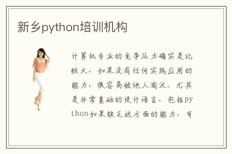 计算机专业的竞争压力确实是比较大,如果没有任何实践应用的能力,很容易被他人淘汰。尤其是非常基础的设计语言,包括python如果缺乏这方面的能力,可以找一个水平比较高的培训机构,提高就业水平,让自己的就业变得更加简单。当然大多数学生也不是为了就业,也是希望能不断提升专业知识水平,从而为国家的科技贡献一份力量。其实大多数学校也拥有这样的能力,学生在这样的学校能学习更多专业的知识,改善未来的发展。新乡python培训机构哪些好,可以多关注等级高的,专业排名靠前的学校,这些学校往往师资力量都比较雄厚,专业资源也比较丰富。新乡python培训python培训机构用处大不大,很多培训机构都能够针对不同的学生选择恰当的培训方案,让学生可以更快吸收专业知识,作用还是比较大的。