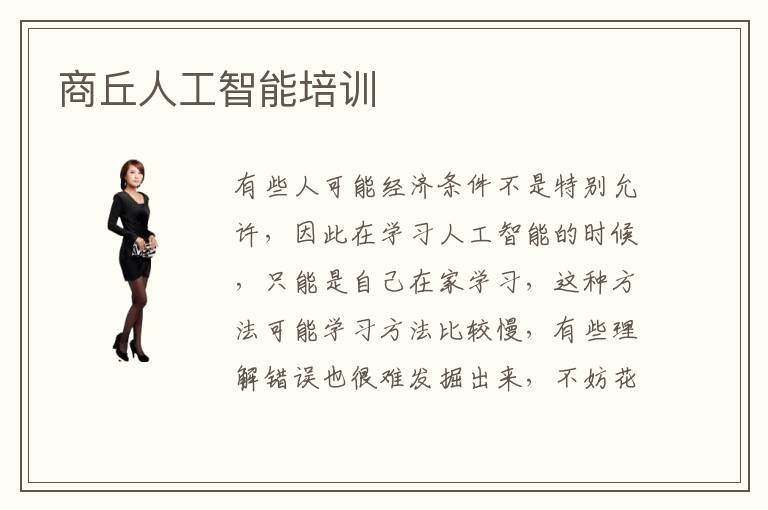 有些人可能经济条件不是特别允许,因此在学习人工智能的时候,只能是自己在家学习,这种方法可能学习方法比较慢,有些理解错误也很难发掘出来,不妨花一点钱到人工智能培训学校,适当提升专业技术,很多情况下都能够减少压力,提高学习的效率,更能够节省时间和精力。商丘人工智能培训值得考虑吗,其实很多学校都值得大家考虑,不懂的情况下可以咨询专业的老师,了解各种选择的方法,包括培训机构的专业技能,特色专业以及各种培训的方法等等。商丘人工智能培训学生的效果大多数都比较优越,有培训机构确实是可以针对学生的基础来训练,从简单的到复杂的,一系列的培训在两三个月内完成。而学生在短时间内也不会感觉到特别困难,学习到很多内容,也会感觉特别放松。