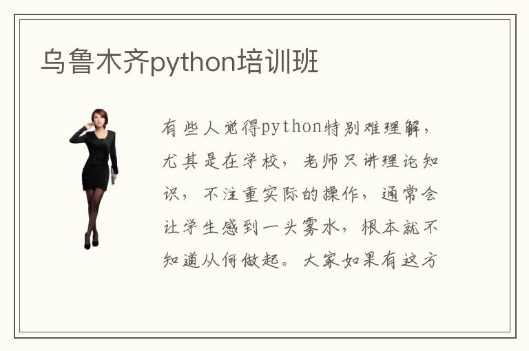 有些人觉得python特别难理解,尤其是在学校,老师只讲理论知识,不注重实际的操作,通常会让学生感到一头雾水,根本就不知道从何做起。大家如果有这方面的苦恼,可以先了解培训班的优势,然后找到适合的培训班的类型,发挥自己的长处。培训班用处大吗,大多数培训班的作用还是比较大的,一方面培训班的教学规模也比较大,有些培训班可以培养几百人,而且成果都还不错,每一年都有大量优秀的毕业生,在各大企业中展示自己的风采。乌鲁木齐python培训python培训班哪些比较好,可以考虑教学模式先进,老师的资源丰富,学生水平高的学校类型。乌鲁木齐python培训班找工作会被拒绝吗,大多数学校都能取得不错效果,但到底找工作会不会被拒,要看个人的能力情况,有些人每天都能提升自己的就业优势,很快就能找好的工作。