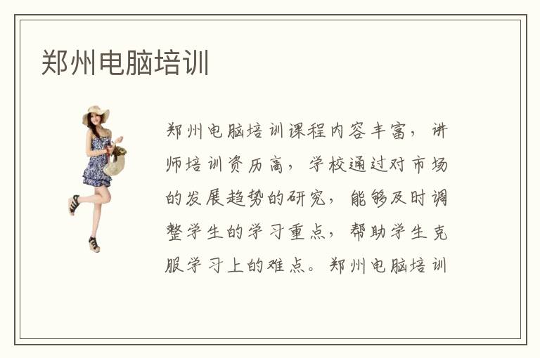 郑州电脑培训课程内容丰富,讲师培训资历高,学校通过对市场的发展趋势的研究,能够及时调整学生的学习重点,帮助学生克服学习上的难点。郑州电脑培训班贵吗?郑州地区电脑培训机构的培训难度大不大?学习新的专业课程就要做好面对难题的准备,随时准备接受挑战。郑州计算机培训班训练成果展示怎么样?总体来看,郑州IT培训院校在专业上的培训是有良好的口碑的。
