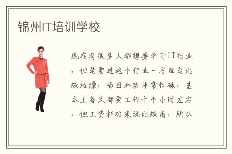 现在有很多人都想要学习IT行业,但是要进这个行业一方面是比较枯燥,而且加班非常忙碌,基本上每天都要工作十个小时左右,但工资相对来说比较高,所以对于很多人来说都希望能进入到这一行,然后让自己未来的生活变得更加轻松,但一定要找一个比较专业的培训学校,不要选择没有牌照的小学校。锦州IT培训学校如何,其实很多学校都能够发挥优势,但是在选择学校之前还要考虑不同学校的专业差异性,虽然每个学校都有不错的专业,但不同的专业其实是千差万别,要针对自己的兴趣爱好来考虑。锦州IT培训学校介绍,现在有非常广泛的就业趋势,而且很多人在培训学校一段时间之后,可以迅速掌握专业的要领,不过也要看个人的学习方法以及接受的努力,不要一概而论。