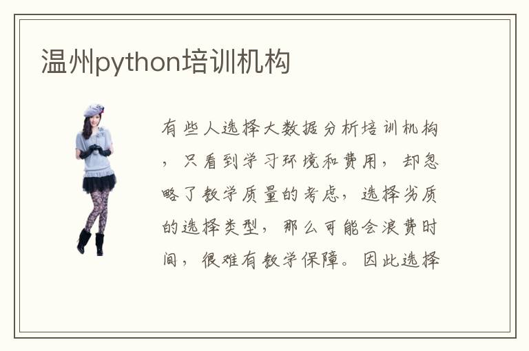 有些人选择大数据分析培训机构,只看到学习环境和费用,却忽略了教学质量的考虑,选择劣质的选择类型,那么可能会浪费时间,很难有教学保障。因此选择培训机构要多关注比较先进的教学模式,新颖的学校类型,不要选择墨守成规,照本宣科的学校。温州python培训机构选择方式可以先从学生的口味出发,有条件的情况下可到当地的学校咨询,了解学生的口碑和评价,这样也能在很大一个程度上反映出学校的教学质量。温州python培训python培训机构见效吗,一方面有学校的教育质量来决定,另外一方面也要看学生自己。如果学生平时不特别努力,经常依赖于老师,那么教学成果也比较难凸显。温州python培训机构水平高不高,每个学校的水平都不一样,比如有些学校经验特别丰富,老师的资历比较深,教学水平也会有所提高。