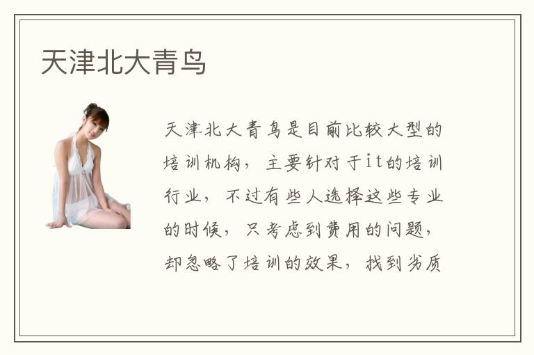 天津北大青鸟是目前比较大型的培训机构,主要针对于it的培训行业,不过有些人选择这些专业的时候,只考虑到费用的问题,却忽略了培训的效果,找到劣质的培训机构,不利于未来的发展成才。天津北大青鸟有优点吗,一方面学校的教学水平比较高,老师的经验丰富,也能针对不同的学生来制定科学的培训方案,培训的效果更加优越。天津北大青鸟有没有好一点的,可以找等级较高的学校类型,虽然很多学校并没有非常先进的设备,或者是规模不是那么大,但还是麻雀虽小,五脏俱全。北大青鸟本来就是非常好的学校,所以大家也不要担心,因为这些学校已经拥有多年的教学经验,老师的水平都相当高,有已经有20多年的经验,了解整个行业的发展动态。学生在这些老师周围学习,可以耳闻目染,掌握专业知识,未来发展就业也会有更多潜移默化的帮助。