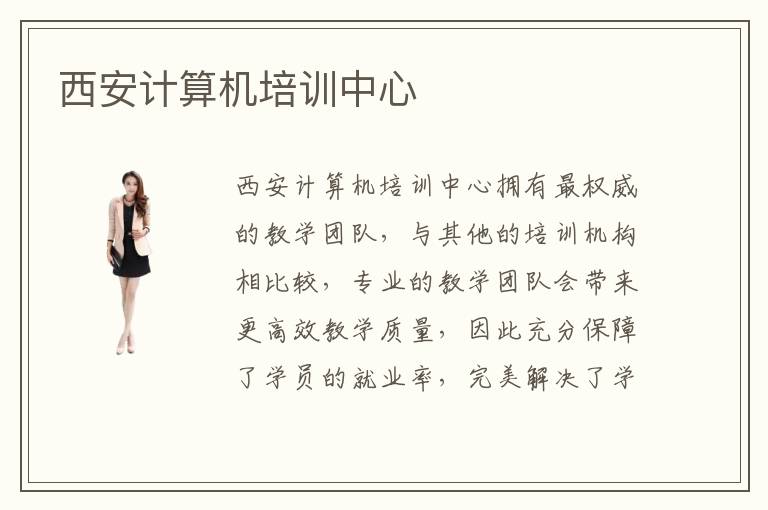 西安计算机培训计算机培训中心拥有最权威的教学团队,与其他的培训机构相比较,专业的教学团队会带来更高效教学质量,因此充分保障了学员的就业率,完美解决了学生在找工作时面临的各种困难。在西安计算机培训中心接受专业的计算机技能培训,完全不需要担心就业的问题,从西安计算机培训中心毕业的学生,都拥有很强的计算机专业技能以及丰富的项目经验。