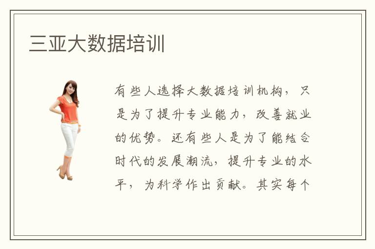 有些人选择大数据培训机构,只是为了提升专业能力,改善就业的优势。还有些人是为了能结合时代的发展潮流,提升专业的水平,为科学作出贡献。其实每个人的目的都不一样,教学的方法以及教学的内容等等都存在差异。大家如果觉得自己缺乏大数据的了解,可以找专业的培训方式,改善未来的发展方向。三亚大数据培训就业优势都是比较明显的,有培训机构可以高达99%,一方面是由于现在这些专业是重要的缺口,很多企业都需要这样的人才。另外一方面很多人觉得自己的专业水平不高,因此培训机构提升就业的能力。三亚大数据培训适合学习吗,大多数培训机构都有不错的学习氛围,非常适合深入的学习。三亚大数据培训得花多少钱,大概是1000到1万元之间,其实要看所报名的教程和学校的收费。