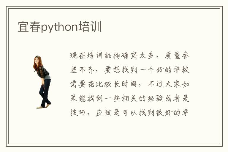 现在培训机构确实太多,质量参差不齐,要想找到一个好的学校需要花比较长时间,不过大家如果能找到一些相关的经验或者是技巧,应该是可以找到很好的学校类型。宜春python培训经验如何,很多培训机构的教学水平高,专业优势明显,也拥有良好的设备,受到很多学生的欢迎。宜春python培训有什么优点,主要在于老师的水平比较好,小班教学,让学生和老师的互动更多了,可以针对学生的问题进行适当的改善,一对一的指导,短时间内即可发挥良好的优势。宜春python培训就业容易吗,很多培训机构都主要针对学生的实际应用能力来提升,提供大量现成的设备和优越的资源,让学生拥有更强的应用水平,那就业过程中,企业也会更加关注学生理论知识的转化,所以要想找工作是很简单的事情。