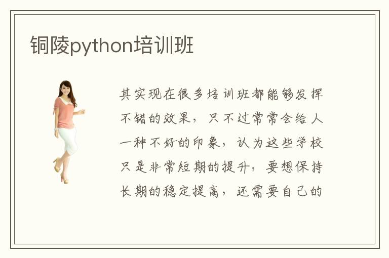 其实现在很多培训班都能够发挥不错的效果,只不过常常会给人一种不好的印象,认为这些学校只是非常短期的提升,要想保持长期的稳定提高,还需要自己的努力,因此有些人觉得报班完全没有必要,不如自己学习更好。其实对于基础的设计语言来说,这是自己学习也是可以的,但对于比较难理解的科目,比如python可能需要老师的指导下,才能够达到更好的效果。那这个时候大家不妨考虑各种培训班,提升专业的技能,那么铜陵python培训怎样?其实大多数的效果还是相当不错的,不过有些人的专业基础情况是比较薄弱,要从基础开始,花比较长时间。大家在选择这些学校的时候还是要多关注自己的就业优势,花大量的时间投入到实践当中。铜陵python培训质量如何,都有不错的效果,资源丰富,就业率也大大升高。
