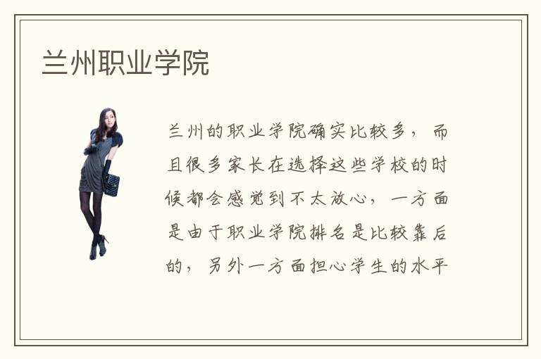 兰州的职业学院确实比较多,而且很多家长在选择这些学校的时候都会感觉到不太放心,一方面是由于职业学院排名是比较靠后的,另外一方面担心学生的水平不够高,老师教育经验不够丰富,那么孩子在学习的时候会更加困难。兰州职业学院简介可以从专业技术水平以及老师的资源,学校的办学理念,办学规模,办学时间等等进行综合的考虑,通过这几个方面就可以更加了解学校的文化以及大概的趋势,具体程度等等。兰州职业学院如何,很多学校都有效果,但也不排除有一些学生学习了半年左右,还是看不到明显的功效,常常会拖累班级的后腿,最主要是和学校的学习氛围以及专业的设置,教育课堂设置是有关系的。因此大家在考虑学校之前,要对比清楚不同学校的课程设置安排。