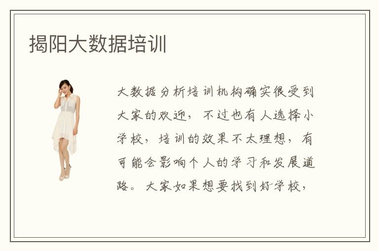 大数据分析培训机构确实很受到大家的欢迎,不过也有人选择小学校,培训的效果不太理想,有可能会影响个人的学习和发展道路。大家如果想要找到好学校,一方面要看老师的资历,另外一方面还要多关注不同的专业课程,竞争优势,就业环境等等。要是培训机构的水平很高,虽然费用有点贵,但还是比较值得的。揭阳大数据培训水平如何,大多数都属于非常高的位置,老师也会有良好的经验,师资力量丰富。揭阳大数据培训技术过不过关,其实一方面要看配套的设施,还要看老师的教学经验,要是配套设施比较完善,每一节理论课都能配置相应的实训基地和课程,教学的成果会更加明显。揭阳大数据培训专业课程一般都是会根据每个学生的需求以及企业的需要来设置,学生拥有更多实践应用的机会。
