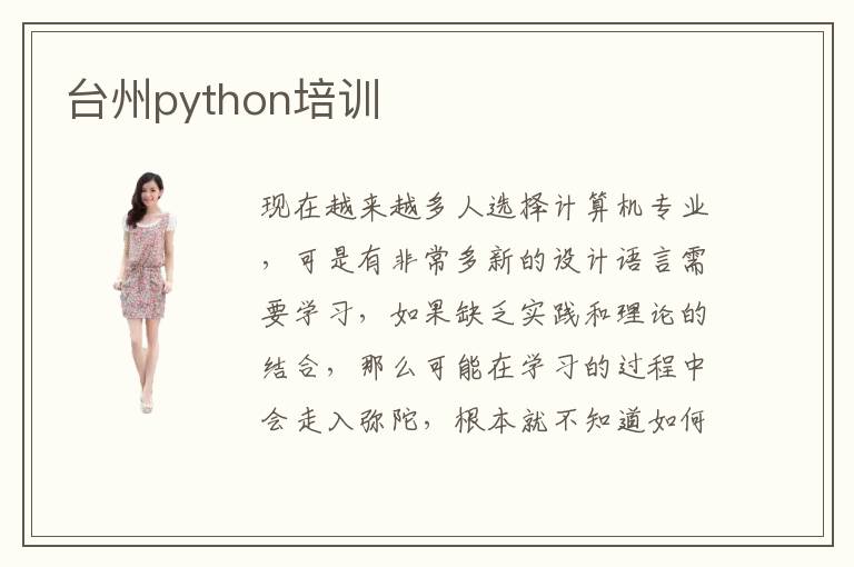 现在越来越多人选择计算机专业,可是有非常多新的设计语言需要学习,如果缺乏实践和理论的结合,那么可能在学习的过程中会走入弥陀,根本就不知道如何解决。比如python学习,如果发现有些知识点特别难理解,可以找培训班来改善,相信也能得到比较明显的优势。台州python培训怎么挑,一方面可以看老师的水平,专业的资源,教学的经验,配备的优良设施等等,要是各方面都还不错,那么说明教学的成果也相对理想,可以高效保障学校的教学质量。台州python培训学习效率一方面要看老师的教学方式,另外一方面还要看学生的学习态度,要是老师的经验丰富,一眼就看出来学生的问题所在,然后再将其提出,学生会针对性进行弥补,教学的效果会比较明显,也不会影响个人的学习进度。