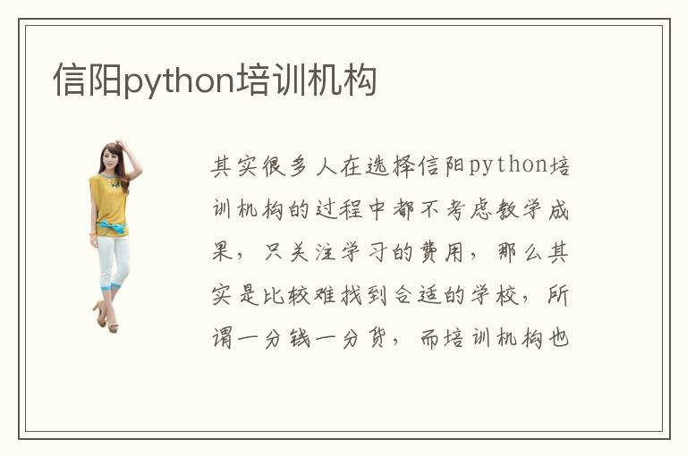 其实很多人在选择信阳python培训机构的过程中都不考虑教学成果,只关注学习的费用,那么其实是比较难找到合适的学校,所谓一分钱一分货,而培训机构也是如此。要是培训机构的教学质量比较糟糕,教育资源没有那么雄厚,那么可能费用会比较便宜,但是这些学校往往不太正规,教学的成果也非常一般,因此大家要谨慎选择和考虑。信阳python培训python培训机构学费可能需要花1万元左右,其实有些基础的课程几千块就可以了,不过有人的基础是非常好的,可以学习高端的课程项目,费用也会增高一点点。信阳python培训机构效果其实要看老师的水平,配套的设施,实习的能力以及学生的努力程度,如果老师的水平是比较高的,专业程度更为明显,学生的能力更强,那么教学优势也会有比较好的改观。