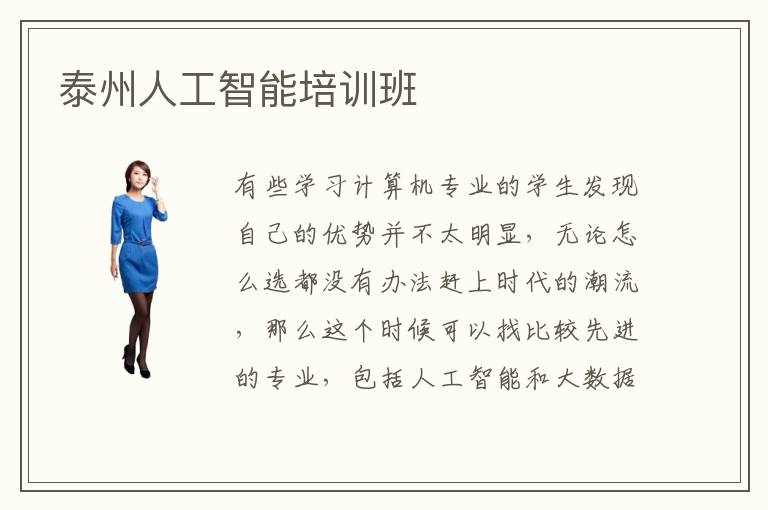 有些学习计算机专业的学生发现自己的优势并不太明显,无论怎么选都没有办法赶上时代的潮流,那么这个时候可以找比较先进的专业,包括人工智能和大数据分析等等,进行针对性的培训,相信就能够发挥更好的优势。当然不是所有人都适合要针对自己的兴趣爱好来选择,有些人学习比较慢,还可以找培训机构进行改善。泰州人工智能培训人工智能培训班技术如何,要是能找等级比较高的培训机构,往往效果是非常优越的。但也不排除有些人找到小学校,虽然费用便宜,但是很难保证成果。泰州人工智能培训班水平大多数都还不错,有些专业培训班的技术水平非常高,老师的经验也特别丰富,因此能保障效果。泰州人工智能培训班找工作难不难,很多培训班找工作还是相对简单,有些培训机构能够针对学生的就业形势,采用合适的调整方案,在职业生涯中保持优势。
